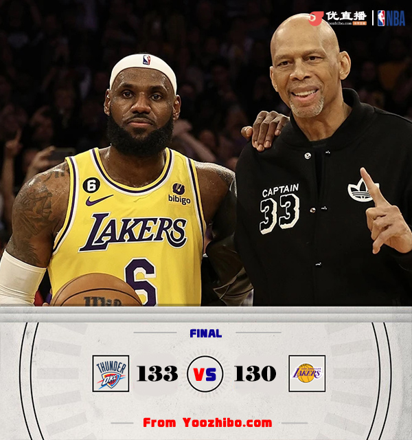 178直播2月8日讯 NBA常规赛,湖人今日主场迎战雷霆,前者上场比赛遭遇鹈鹕逆转排在西部第十三位,后者则是惨败勇士位列西部第十二位,此役詹姆斯有望登顶常规赛历史得分王。比赛上来,两队就展开了对攻大战,场上比分交替领先,次节双方的攻势依旧不减,但明显雷霆占据了上风,单节狂轰40分将分差拉开到了两位数,詹姆斯上半场展示出了不俗的进攻欲望独得20分,半场结束时湖人落后10分;下半场湖人开始发起追分,詹姆斯也终于在第三节结束前用一记后仰跳投完成登顶,末节湖人一度将比分追至106-106平,但此后他们突然断电,雷霆迅速用一波12-0的攻势再次拉开分差,之后的比赛湖人没有再获得任何机会,最终湖人130-133不敌雷霆遭遇连败。