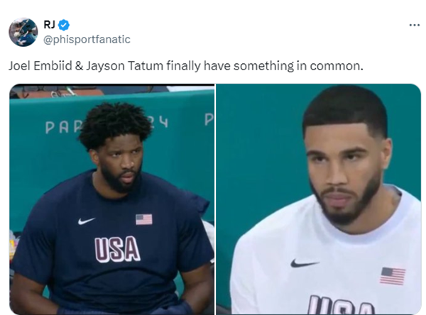 178直播讯 美国男篮轻取南苏丹,这一场比赛塔图姆和浓眉首发出战,恩比德成为全队唯一一位被弃用的球员,赛后杜兰特回应塔图姆恩比德先后被DNP:他们没有抱怨,其他人站出来了。科尔透露弃用恩比德原因,并宣布下一场恩比德将重返首发。