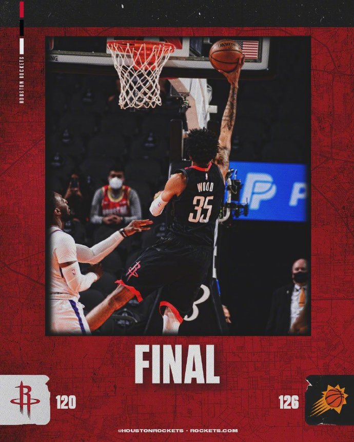 火箭(14-40):伍德25分15篮板3助攻2抢断、小波特21分14助攻5篮板2抢断、奥利尼克16分8篮板、布鲁克斯14分、沃尔13分8助攻、泰特10分5篮板4助攻3抢断、小马丁9分7篮板2盖帽、威尔森8分6篮板