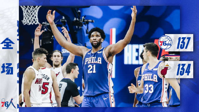 178直播1月13日讯 76人今日坐镇主场迎战热火,76人遭遇新冠隔离问题导致人员不整,近期遭遇3连败让出了东部榜首位置,热火近期同样受新冠影响,上一场对阵凯尔特人凑不齐8人导致比赛延期。首节比赛76人依靠15-6的开局抢到领先,但后半节轮换热火回敬一波9-1的攻势迅速追上比分。次节热火外线突然爆发,这一节他们爆发命中8记三分轰下38分,半场结束时热火领先76人8分。第三节恩比德突然爆发, 他这一节4分钟里轰下18分,单节贡献20分3篮板3助攻带队实现反超,末节76人曾依靠开局格林的两记三分将优势拉大至两位数,但热火也有他们的英雄,希罗迎来爆发砍下12分,热火追平比分将悬念保留到最后。最后时刻对决热火依靠阿丘瓦连续得分反超比分,不过恩比德抗住压力命中投篮将比赛拖入加时。加时赛中恩比德状态火热包揽球队前9分,而马赛厄斯则在最后投进制胜三分。最终,76人加时惊险击败热火结束3连败。