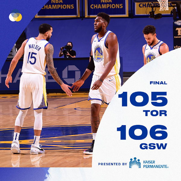 178直播1月11日讯 勇士坐镇主场迎战猛龙,此役猛龙采用多人包夹库里的防守策略,但是勇士的维金斯、格林和李等站出来提供火力支援,勇士得以破解猛龙的防守,在前三节建立起15分领先。不过,勇士在末节未能延续火力,猛龙的洛瑞则突然爆发,他频频命中三分并强突得手,率领猛龙打出高潮成功反超比分。关键时刻,李成功造洛瑞犯规两罚全中,勇士反超1分,留下4.3秒给猛龙。最后一攻,西亚卡姆翻身跳投出手不中,猛龙以105-106惜败。