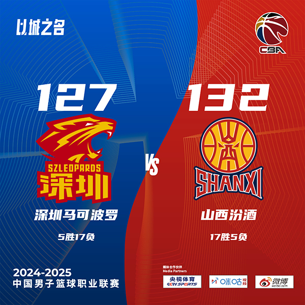 178直播讯北京时间12月24日讯 CBA常规赛,深圳主场迎战山西,深圳目前5胜16负排在第18位,山西则是16胜5负高居积分榜次席,本场比赛,山西外援古德温被禁赛。比赛开始,双方上来都迅速进入状态,并展开对攻战,随后威姆斯有攻有传,联手汤普森助队一度领先到双位数,但山西节末发力追到差3分,次节周鹏发力,单节连中3记三分带队重新拉开比分,但张宁站出来外线强势回应3记三分止血,原帅半场结束之前的三分再进直接反超2分。下半场,迪亚洛接连单打帮助山西拉开比分,但周鹏还能扔进三分,随后周鹏三分被莱蒙垫脚受伤下场,但约翰逊接连中远投轰出9-0反超6分,末节双方继续拉锯战,周鹏重新披挂上阵,山西很快犯满,深圳保持领先,迪亚洛违体犯规后深圳领先到8分,但深圳连续失误,张宁一攻一传拖入加时。加时赛,迪亚洛成为主攻点帮助球队反超3分,贾明儒也接连贡献得分,迪亚洛6犯毕业,周鹏关键绝平三分不中,最终山西加时132-127力克深圳。