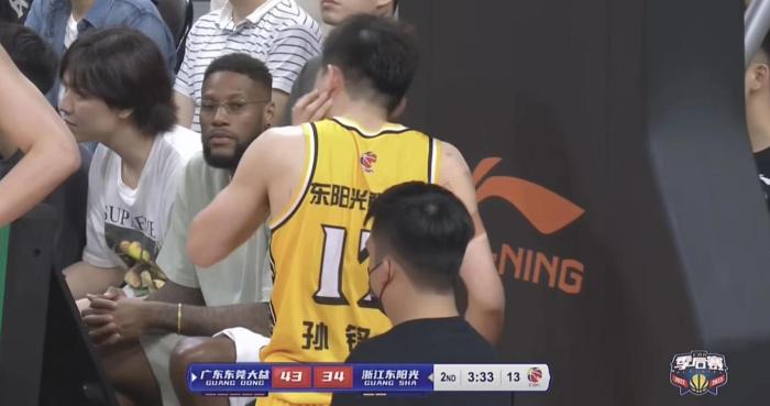双方比分上的焦灼,也让比赛来到第二节还剩下3分钟的时候发生了意外。在广东男篮的进攻回合,任骏飞在篮下形成了大打小,徐杰第一时间给球,任骏飞转身进攻,而在这个过程中,任骏飞的肘部也是狠狠的集中了孙铭徽的头部,孙铭徽也是倒地痛苦的捂住自己的头,随后,裁判也是吹罚了任骏飞的进攻犯规。所幸的是,孙铭徽在场下缓和了一会,虽然下巴还是有些影响,但是并没有大碍。