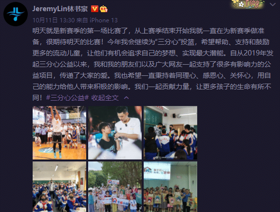 2021-22赛季,林书豪重返CBA,效力于北京首钢,他的“三分心”公益捐款为135000元。