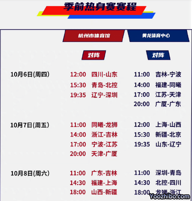 辽宁男篮在6日对阵深圳,他们也需要比赛来磨合阵容。广东男篮的两场比赛是6日对阵广厦,8日对阵吉林,新赛季杜锋能否带队重新冲击冠军成为一个看点。新赛季CBA常规赛具体赛程还没有公布,山东男篮在王晗的带领下表现如何,值得关注。