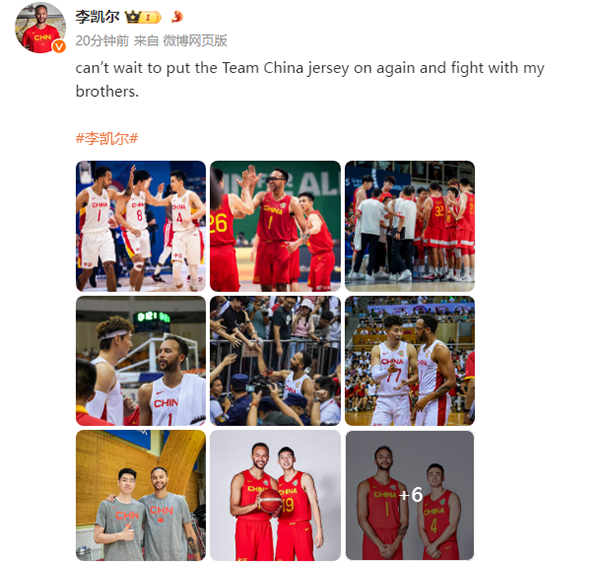 178直播讯 北京时间6月24日,最近关于李凯尔可能结束与中国男篮合作的消息引热议,李凯尔中方经纪人辟谣后,李凯尔本人正式击碎谣言,晒为中国男篮效力的组图并且配文写道:等不及再次穿上中国男篮的球衣,和兄弟们并肩作战了!