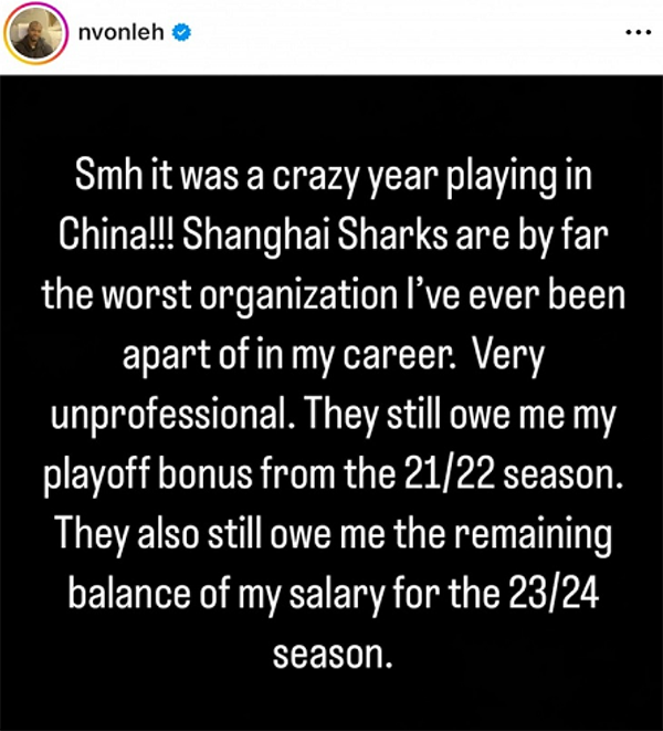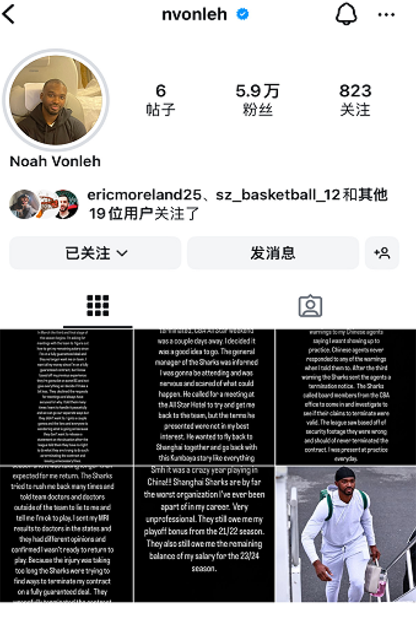 178直播讯 上海男篮被外界关注,引发不小的争议,起因是曾效力上海男篮的外援冯莱在社交媒体上怒喷球队,这位悍将连续发文,直言:“上海大鲨鱼是我生涯至今效力过的最糟糕的俱乐部。非常的不职业。”
