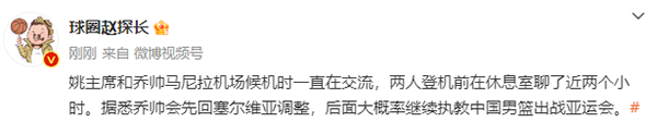 据球圈赵探长报道,姚主席和乔帅马尼拉机场候机时一直在交流,两人登机前在休息室聊了近两个小时。据悉乔帅会先回塞尔维亚调整,后面大概率继续执教中国男篮出战亚运会。