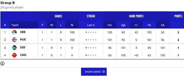 目前B组的排名,首轮大胜的塞尔维亚占据第一的位置,即便没有约基奇,他们在小组中的实力也是独一档的。波多黎各排名第二,首战加时赛实现逆转,取得开门红。第三名是遗憾输球的南苏丹,中国男篮42分惨败排名垫底。