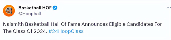 178直播12月22日讯 ,奈史密斯篮球名人堂官方今日公布了2024年名人堂首批候选者名单,一共有151位球员、教练、篮球从业者和团队进入首批候选名单。