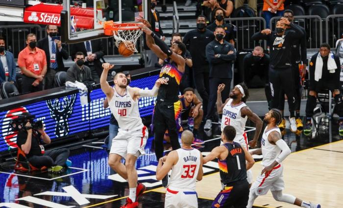 178直播讯 北京时间6月23日,刚刚结束的一场NBA季后赛西部决赛第二场较量,太阳104-103战胜快船,取得了系列赛大比分2-0的领先。本场比赛两队一直僵持到了最后时刻,太阳凭借着艾顿的空接准绝杀险胜快船。