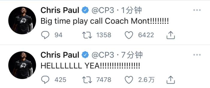 本场比赛,保罗依旧缺阵,但是保罗也在时时刻刻关注着比赛的进程。太阳赢球后,保罗第一时间发推表示:“太对了,蒙蒂教练布置了一个关键战术。”