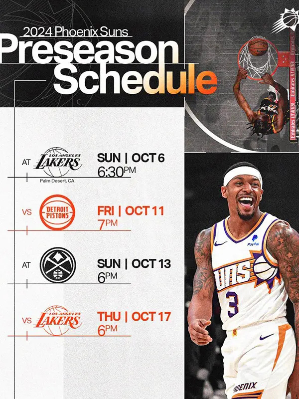 2024-2025赛季NBA太阳季前赛赛程(以下均为北京时间)