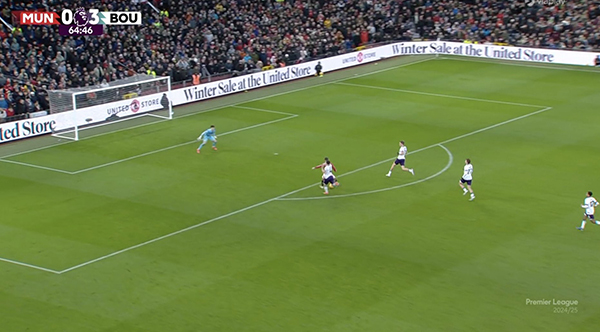 阿莫林执教后,加纳乔只为曼联打入一球,效率很差。对伯恩茅斯的比赛中,他本有破门机会,但好不容易通过拼命冲刺得到与门将一对一的机会,他的射门却毫无力度,也没有角度,被门将扑住。