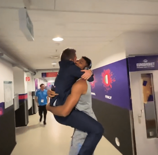赢球后,意大利众球员开心庆祝胜利,赛后意大利主帅波切科非常激动,跑回更衣室的途中在球员通道偶遇希腊球星字母哥,开心地跳起熊抱字母哥并激动地亲吻了字母哥的脸颊;当时字母哥正听着音乐走路,对于这突如其来的“庆祝”,明显有些懵,不过他还是用笑容缓解了尴尬。