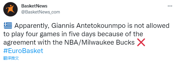 178直播09月06日讯 欧洲杯小组赛希腊93-77大胜英国,雄鹿巨星字母哥轮休缺席比赛,因膝盖不适而休战吗?据美媒BasketNews报道,字母哥昨晚轮休的原因是希腊与雄鹿达成了协议,不允许他在五天内打四场及更多比赛;富尼耶呼吁给球员更多的休息时间,东契奇直言可能导致更多的伤病。