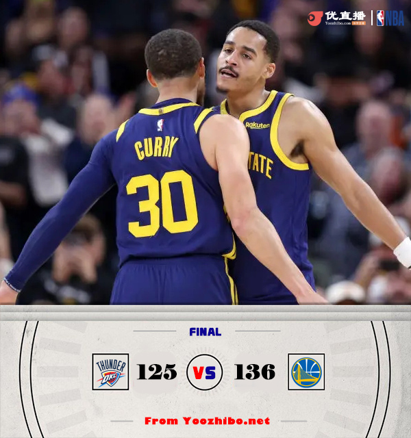 178直播4月5日讯 NBA常规赛,勇士今日迎战雷霆,前者上场比赛惜败掘金暂列西部第六位,后者则是两连败位列西部第十位,此役克莱和维金斯缺战。比赛上来,雷霆就占据了场上的领先,勇士虽然多次追平比分却始终没能完成反超,次节勇士依旧无法限制对手的攻势,单节让雷霆轰下40分,半场结束时分差已经达到了十分;下半场回来勇士多次发起追分但雷霆总能给出回应,末节上来普尔连续在外线出手终于帮助球队实现反超,之后的比赛双方一直保持拉锯,场上比分交替领先,比赛悬念保持到了最后,关键时刻雷霆的进攻出现问题,勇士一波8-0的小高潮后没有再给对手机会,最终勇士轻取雷霆,送给后者三连败。
