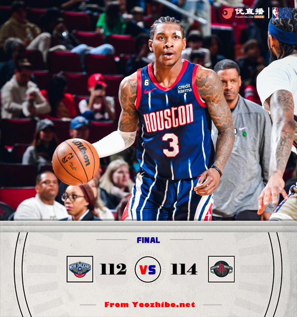 178直播3月18日讯 NBA常规赛继续进行,火箭坐镇主场迎战鹈鹕,此前鹈鹕33胜36负排名西部第十二,火箭则是17胜52负位列西部倒数第一。比赛开局,鹈鹕外线手感极佳,单节7投6中,但火箭在禁区内予取予求,首节结束火箭暂时领先5分。次节形势出现逆转,鹈鹕外线失准但在内线连续打成,火箭则在进攻端出现断电,半场结束鹈鹕54-49取得反超。易边再战,鹈鹕延续进攻状态,稳扎稳打维持领先优势,分差很快来到两位数,此后分差在十分上下浮动,比赛很快进入第四节。末节回来,鹈鹕进攻效率出现下滑,火箭抓住机会蚕食分差至一分,但鹈鹕还是连续打中稳住局势,终场前格林远距离两分命中,小史密斯三分命中完成绝杀,最终火箭114-112逆转战胜鹈鹕。