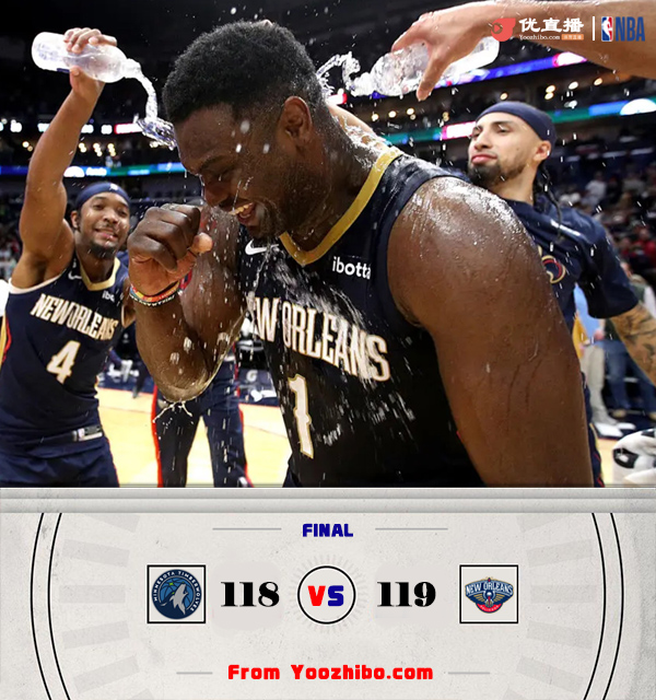 178直播12月29日讯 NBA常规赛继续进行,森林狼和鹈鹕正面对话,鹈鹕近期迎来三连胜,目前与掘金有1个胜场差距稳居西部第二,森林狼则苦吞三连败,目前以16胜18负的战绩暂列西部第11位。比赛开始后双方你来我往比分紧咬,纳兹-里德里突外投不断取分,鹈鹕则多点开花及时回应,末段森林狼延续火力率先占优,首节结束时森林狼暂时领先4分,次节回来,鹈鹕连中三分一度缩小分差,但中段他们进攻出现停滞,森林狼一波11-2再次拉开比分,半场战罢,森林狼依然领先6分。易边再战后锡安连续杀伤单节爆砍19分,但森林狼稳扎稳打总能及时回应,末段两队延续火力火热对攻,三节结束后森林狼依然领先2分,末节上来,锡安无人可挡连得12分,双方一直缠斗到最后时刻,决胜时刻锡安制造戈贝尔六犯离场后两罚一中,爱德华兹绝杀不中,最终鹈鹕险胜对手。