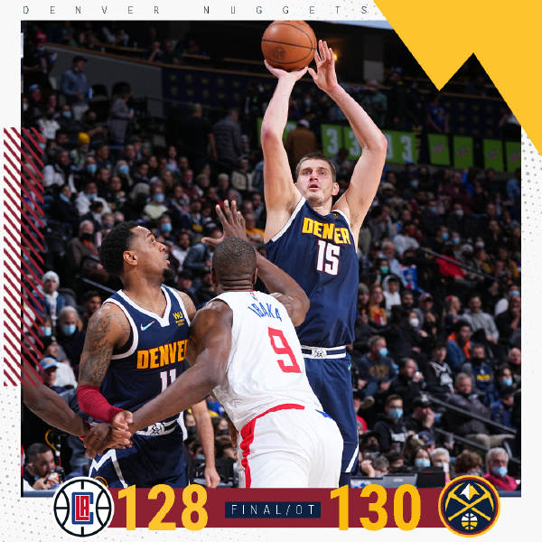 178直播1月20日讯 NBA常规赛,掘金今日迎战快船,前者上场比赛大比分输给了爵士暂列西部第六位,后者则是战胜步行者排在西部第八位,本场小莫里斯和巴图姆缺战。比赛上来掘金就率先进入状态,凭借着一波7-0的小高潮取得领先,之后的比赛快船一直处于落后,但进入次节掘金的命中率急剧下滑,而快船则是下起三分雨实现反超,半场结束时他们已经领先了12分。易边再战,掘金开始发起反扑,并在第三节结束时成功追平比分,之后的比赛双方都没能再获得拉开分差的机会,比赛悬念保持到了最后,关键时刻曼恩的进球超时,约基奇的绝杀球不中,比赛进入加时,加时赛双方打得依旧难解难分,戈登底角射进准绝杀三分,最终掘金加时险胜快船。