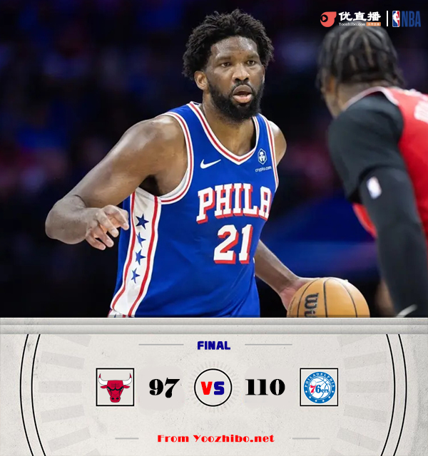 178直播1月3日讯 NBA常规赛76人主场对阵公牛,两队才刚刚交过手,上场比赛76人在恩比德缺阵的情况下不敌公牛,目前76人排在东部第三,公牛排在东部第十。比赛开始后76人迅速打出状态,他们全面开花迅速将分差拉开,尤其是外线三分弹如雨下,公牛则是依旧进攻端依旧慢热,首节76人43-18取得25分领先。第二节76人攻势依旧凶猛,恩比德单节砍下15分带队继续扩大优势。易边再战,公牛在进攻端找到节奏略微将分差缩小,不过无奈此前分差太大,第四节沦为垃圾时间,不过76人最后8分多钟一分未得,最终76人110-97轻松复仇公牛。