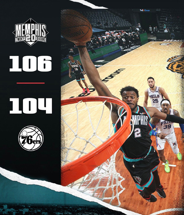 178直播1月17日讯 灰熊今日坐镇主场迎来76人的挑战,缺席了半个月的莫兰特本场迎来复出,76人这边恩比德则因右膝盖疼痛缺阵。首节比赛灰熊在开局慢热的情况下及时找到感觉并迅速追上比分并在第二节出迅速反超比分,76人前半节依靠西蒙斯9分3篮板2助攻的表现尚能咬住比分,但后半节集体哑火,灰熊在莫兰特的带领下送出10-3的进攻取得6分领先结束上半场。第三节灰熊很快便将优势扩大至两位数,76人仅仅抵抗了半节时间又一次末段哑火,灰熊节末再送10-2的攻势取得12分领先。然而末节米尔顿的突然爆发改变走势,他这一节独砍15分帮助76人不断蚕食分差并看到翻盘希望,而莫兰特最后一刻失误给了76人绝杀机会,不过哈里斯随后同样失误葬送良机。最终,灰熊险胜76人迎来4连胜。