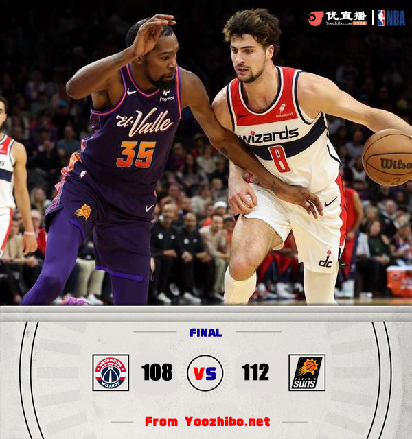 178直播12月18日讯 NBA常规赛,太阳主场对阵奇才。比赛开始,奇才率先发力,多点开花占据主动,杜兰特连续拿分带队追赶,奇才持续发力扩大优势,半场战罢奇才58-45领先13分。易边再战,双方大打对攻,比分咬得很紧,末节奇才突然断电,太阳在布克和杜兰特的带领下奋力反击完成反超,双方争夺陷入白热化,关键时刻奇才连续强攻内线得手,杜兰特暴扣2+1确立优势,奇才苦苦追赶无果。最终,太阳112-108逆转奇才,取得胜利。