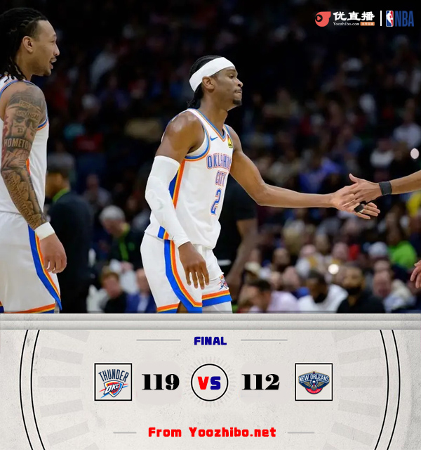 178直播3月27日讯 NBA常规赛激战正酣,雷霆和鹈鹕两支青年军正面对话,鹈鹕迎来连胜后战绩更新为44胜27负,反超快船升至西部第4,雷霆上场不敌雄鹿,落后掘金1个胜场暂列西部次席。比赛开打后基迪连续取分率队占优,杰伦-威廉姆斯·连投带罚续上火力,锡安联手墨菲及时回应,双方你来我往火热对攻,首节结束时鹈鹕领先1分,次节回来,两队开局阶段继续缠斗,但中段鹈鹕进攻突然断电,雷霆一波11-3拉开比分,半场战罢,雷霆已经领先15分。易边再战后雷霆多点开花继续扩大优势,锡安连续杀伤苦苦支撑,末段雷霆进攻陷入停滞,鹈鹕抓住机会回敬14-0进攻高潮,三节结束后鹈鹕仅落后6分,末节决战,雷霆进攻依然滞涩,鹈鹕延续火力一举反超,决胜时刻多特三分命中夺回优势,杰伦-威廉姆斯上篮打进,鹈鹕连续不中追分未果,最终雷霆119-112终结对手连胜。