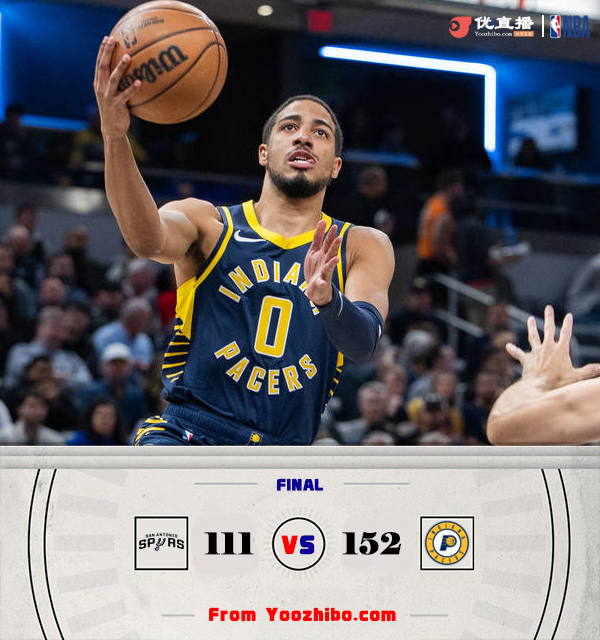 178直播11月7日讯 NBA常规赛,马刺客场挑战步行者。上半场,两队开场大打对攻,哈利伯顿和特纳联手拿分,首节后半段马刺哑火,托平扣篮引领球队19-5的进攻高潮确立优势,次节马刺里突外投努力追赶,步行者行云流水的进攻让马刺无力招架,半场战罢步行者86-61领先25分。下半场,步行者依旧攻势如潮,文班亚马连投带罚苦苦支撑,步行者火力全开轰出15-0的进攻高潮将分差拉开到30分以上,三节打完步行者轰下119分。末节步行者依旧火力不减,多点开花将分差拉开到40分以上,最终,步行者152-111大胜马刺。