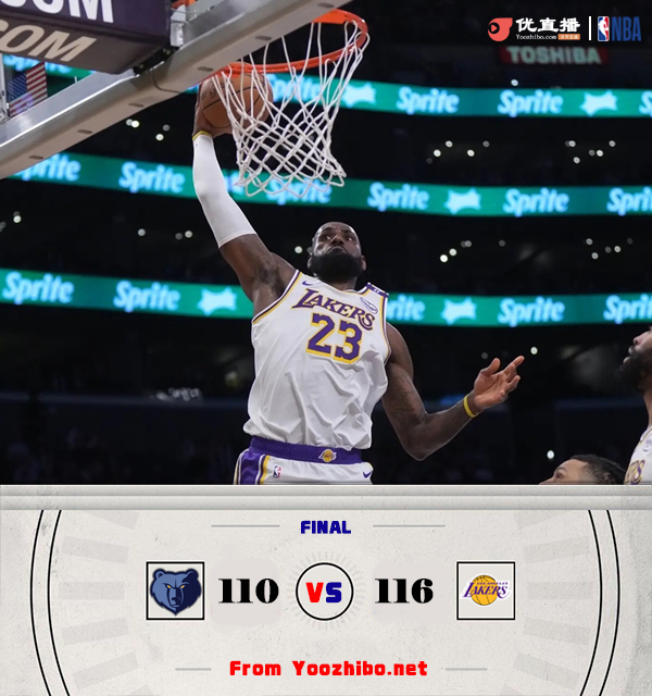 178直播12月16日讯 NBA常规赛,湖人主场迎战灰熊,湖人近期状态不佳,近5战1胜4负;灰熊则是士气正佳,近11战10胜,目前也是经历4连胜。本场比赛詹姆斯复出。比赛开始,詹眉联手攻防建功带队打出9-2不错开局,JJJ带队追分,但浓眉内线阻挡不了,湖人接连反击再打8-0拉开双位数领先,首节湖人领先10分,次节莫兰特命中首个运动战进球带队追分,湖人继续发力10-0拉开15分领先,JJJ苦苦支撑,浓眉继续发力带队一度领先到20分以上。下半场,双方围绕着20分左右分差展开拉锯战,浓眉内线继续取分但肩膀受伤回更衣室,灰熊趁机打出18-5攻击波追至差9分,末节浓眉归来连续中投砍下7分稳住局势,JJJ和八村塁相继6犯毕业,湖人能保持住10分左右领先,最终湖人116-110力克灰熊,终结对手4连胜。