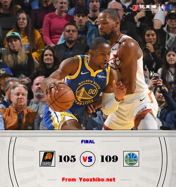 178直播讯北京时间12月29日讯 NBA常规赛,勇士主场迎战太阳。勇士3连败目前仅排在西部第十一,太阳西部第十。布克缺阵,库里和追梦迎来复出。比赛开始,比尔手感火热4投全中独得10分,库里和库明加联手带队高效拿分强势反超,杜兰特连续强解拿分,次节勇士连续失误,太阳利用防守反击轰出26-7的进攻狂潮取得两位数领先,追梦连中三分止血,库里压哨命中,半场战罢太阳65-61领先勇士。易边再战,勇士一波7-0的夺回优势,此后双方陷入缠斗,比分交替领先,太阳持续发力占据主动,末节勇士打出10-1反超比分,双方争夺陷入白热化,关键时刻杜兰特和库明加各自两罚全中,太阳连续打铁,勇士罚球杀死比赛。最终,勇士109-105力克太阳,结束了自己的3连败。