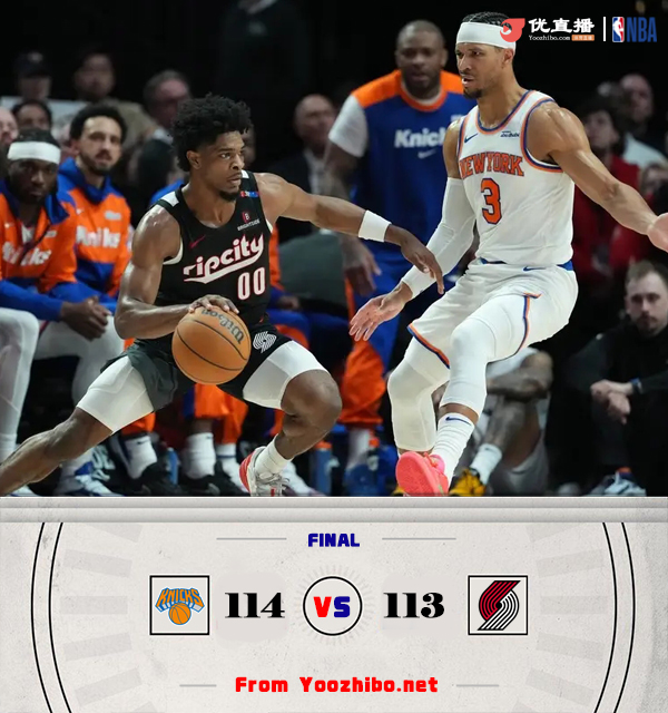 178直播讯3月13日 NBA常规赛,尼克斯对阵开拓者,尼克斯上场比赛轻取国王结束连败,开拓者最近遭遇4连败。开场后两队打得十分激烈,场上比分也是交替上升,布里奇斯早早进入状态频频拿分。第二节两队依旧打得相当胶着,唐斯内线多次强打得手,卡马拉和夏普轮番砍分帮助开拓者紧追不舍。易边再战,阿努诺比用反击和三分为尼克斯先发制人,开拓者立马用一波7-0又将比分追上。最后一节两队依旧僵持不下,唐斯关键时刻连中两记三分,亨德森最后独得8分帮助开拓者将比赛拖入加时。加时赛中两队命中率都不理想,哈特发球失误,阿夫迪亚打成关键2+1反超比分,布里奇斯三分绝杀,最终尼克斯经过加时114-113险胜开拓者。