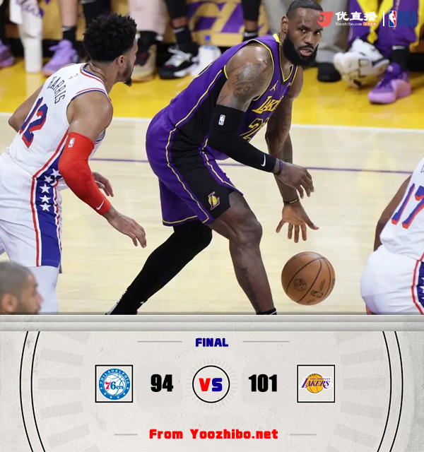 178直播3月23日讯 NBA常规赛,湖人主场迎战76人,湖人目前37胜32负排在西部第9位,而76人38胜31负排在东部第7位,本场比赛托拜亚斯-哈里斯迎来复出。比赛上来,八村塁打得很主动连砍7分,浓眉也是制霸内线,但马克西联手乌布雷带领76人咬住比分,拉塞尔接连三分命中成为队史单赛季三分王,首节湖人仅领先1分,次节双方继续拉锯战,詹姆斯又攻又传帮助湖人建立主动权,但随后湖人进攻端突然停滞,里夫斯连续失误,哈里斯连砍5分助队半场反超2分。下半场,湖人进攻端还是状态一般,哈里斯和马克西接连反击打成拉大分差,湖人依靠三分及时止血,三节结束湖人还落后1分,末节詹姆斯连续攻击内线帮助湖人再次反超比分,但马克西接连突破也能回应,双方比赛进入白热化,浓眉扣篮加2+1助湖人拉开两球以上领先,詹姆斯三分继续扩大领先,浓眉连续贡献关键盖帽,最终湖人101-94力克76人。