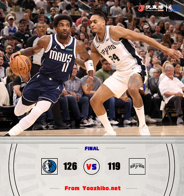 178直播10月26日讯 NBA常规赛马刺主场迎战独行侠,季前赛大放异彩的文班亚马先发出战迎来自己的生涯常规赛首秀,独行侠则依旧是东契奇和欧文领衔出战。开场后马刺在内线连得6分,独行侠外线回敬两记三分,马刺内外开花掌握住场上优势,瓦塞尔也是多次通过反击拿分,独行侠主要依靠小哈达威的发挥咬住比分,马刺首节进攻出色单节砍下43分。次节东契奇和欧文轮番发力带领独行侠追平比分,文班亚马对位格威对抗不占优势主要靠外线出手,瓦塞尔再次爆发帮助马刺一波12-0的攻势再次建立领先,上半场打完马刺68-64领先。下半场刚上来两队都进入状态较慢,场上局面依旧十分胶着,文班亚马受犯规困扰出场时间不多。末节两队依旧轮番打出攻势,文班替补登场后独得9分,最后阶段东契奇和欧文联手帮助独行侠锁定胜局,独行侠力克马刺取得开门红。