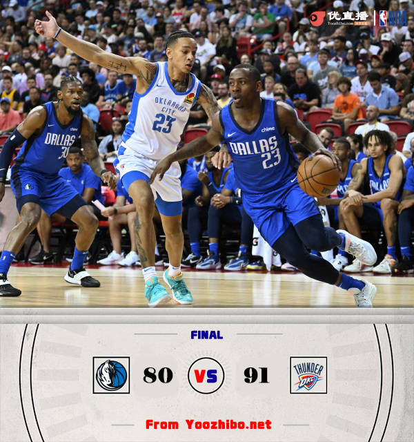 178直播讯 7月9日 NBA夏季联赛,雷霆对阵独行侠。本场比赛霍姆格伦、曼恩及哈迪均会出战。比赛开始,双方开场对飙三分,比分咬得很紧,雷霆持续发力打出8-0取得领先,独行侠内外开花迅速追赶,两队各自送出进攻小高潮,雷霆三分4连击打出12-4将分差拉开到两位数,独行侠强攻内线努力追赶,半场战罢雷霆48-42领先6分。易边再战,独行侠不断冲击篮筐频频得手完成11-2的攻击波反超比分,雷霆多点开花完成14-3的高潮强势回应,此后双方围绕10分的分差展开拉锯战,雷霆顶住了独行侠的反扑,将优势保持到最后。最终,雷霆91-80击败独行侠,获得胜利。
