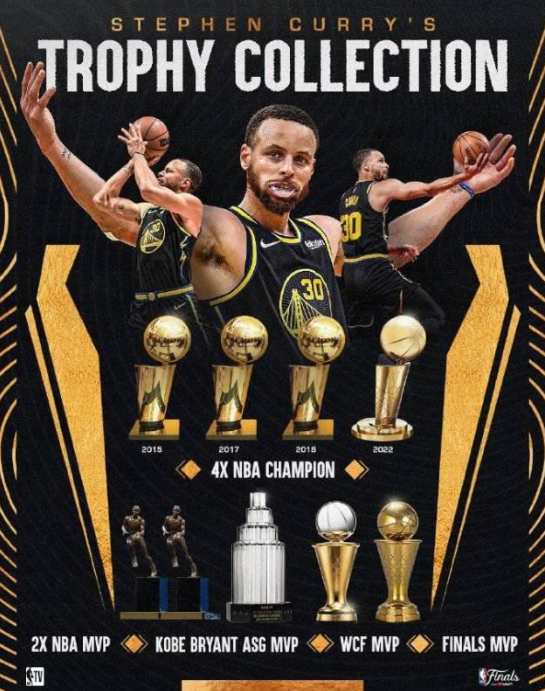 生涯至今,库里已经出战882场比赛,场均按到24.6分4.7篮板6.5助攻1.6抢断,场均命中3.8记三分,三分命中率42.7%;在荣誉方面,库里已经9次入选全明星、9次最佳阵容、4次夺得总冠军、2次常规赛MVP、2次得分王、1次抢断王、1次FMVP和1次全明星赛MVP。