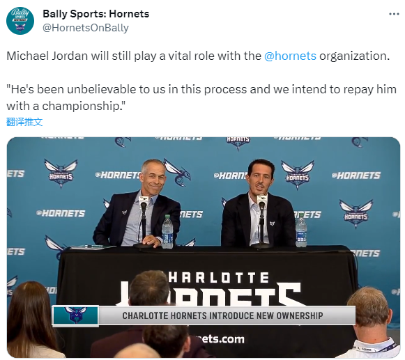 黄蜂新的领导班子还在新闻发布会现场表示:在这个过程中,迈克尔-乔丹对我们来说令人难以置信,我们计划用一个总冠军来回报他。