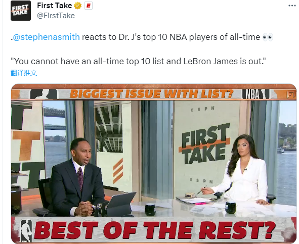 对此,名嘴A-史密斯为詹姆斯抱不平,表示:朱利叶斯-欧文没有选择任何现役球员,他有权发表自己的意见,我只是认为他错了。没有勒布朗-詹姆斯,你就不可能拥有历史前十名的名单。