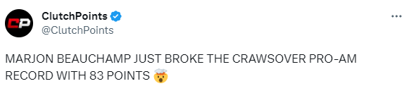 比彻姆业余联赛爆砍83分引热议,美媒以及NBA官方都狂赞他。