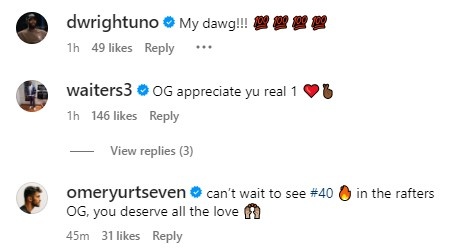 “40号,我们很快就会在球馆上方相见,在那之前,OG正式退役。”
