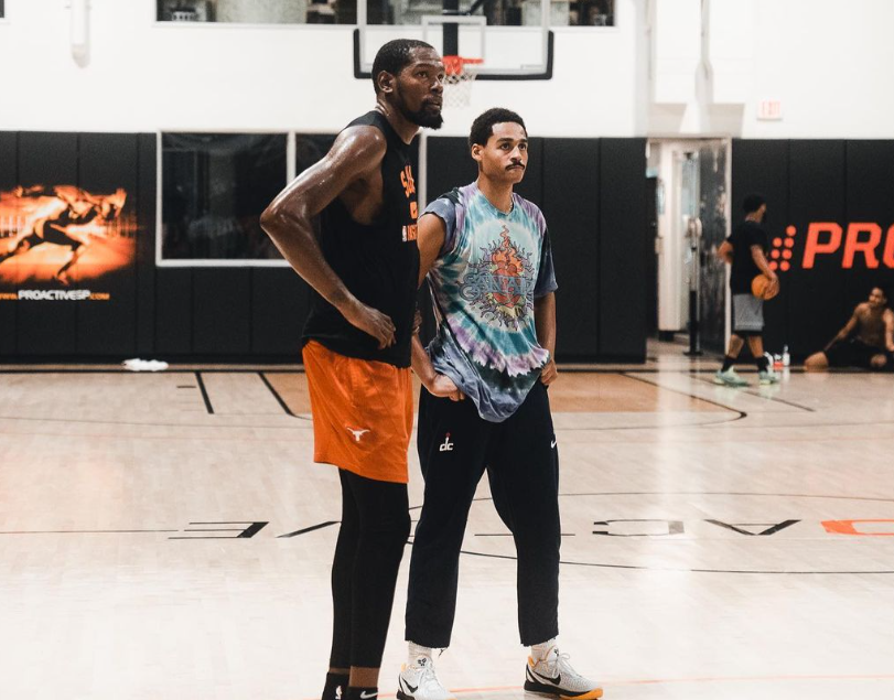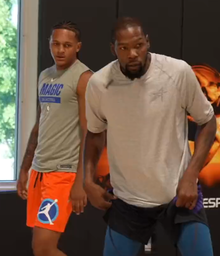 178直播讯07月28日,太阳球星凯文-杜兰特的最新训练曝光,这一次杜兰特和魔术状元班凯罗一起训练,杜兰特苦练招牌杀招,大秀急停干拔、翻身后仰绝招,还玩起来单腿三分;班凯罗跟随杜兰特的脚步,两人的投篮手感很十分火热。