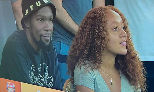 近日,杜兰特还现身洛杉矶公羊主场SoFi Stadium球场,现场观看巴塞罗那与阿森纳的足球友谊赛;杜兰特戴着一顶小黑帽尽显小帅该有的气质,有球迷问坐在杜兰特身旁的美女是谁?这个真不知道,目前还没有媒体爆料杜兰特有新恋情了。