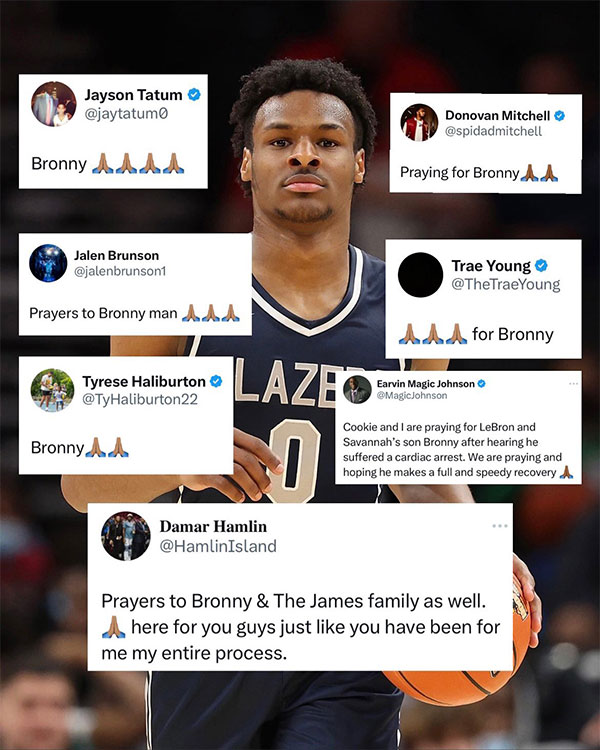 拉马尔-奥多姆发推:为布朗尼和他的家人祈祷!祝这位年轻人早日康复!