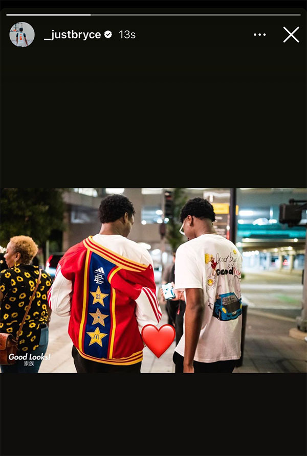 詹姆斯的二儿子布莱斯晒与布朗尼合影,为哥哥祈祷。