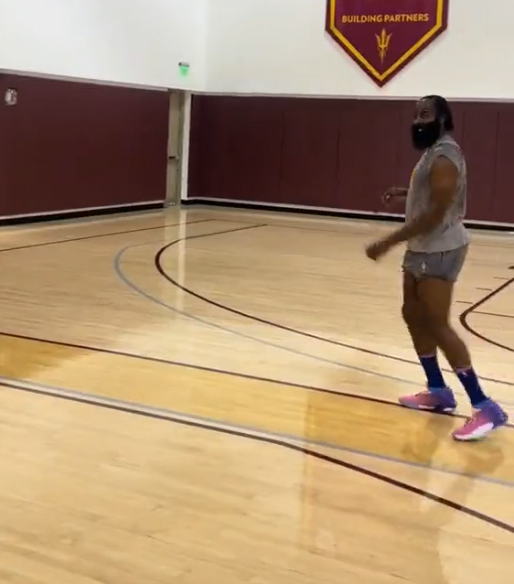 76人记者晒出哈登近日的训练视频,哈登穿着短裤和T恤,戴着头巾、坐在椅子上更换球鞋,之后哈登上场挥汗苦练,从视频中可以看出,哈登借助掩护稳稳命中急停中投,之后连续命中急停三分,招牌双后撤步三分也是一击即中,哈登还加练底角三分以及单腿三分,手感火热,大胡子咧嘴大笑,露出雪白的牙齿。