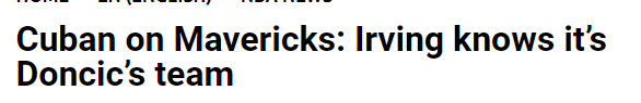 178直播讯07月24日,达拉斯老大之争已经没有悬念了,近日独行侠老板马克-库班公开表态:欧文知道独行侠是东契奇的球队。