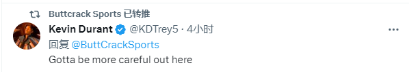 杜兰特则是现身评论区回复:上网冲浪得小心呐。