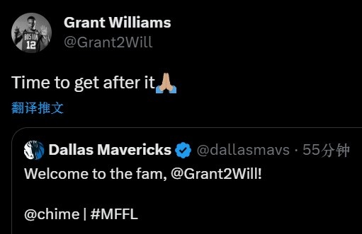 独行侠欢迎格威来到达拉斯,新赛季格威将改穿3号球衣,辅佐东契奇和欧文冲击总冠军;格威转发新东家推文,配文写道:是时候全力以赴了。