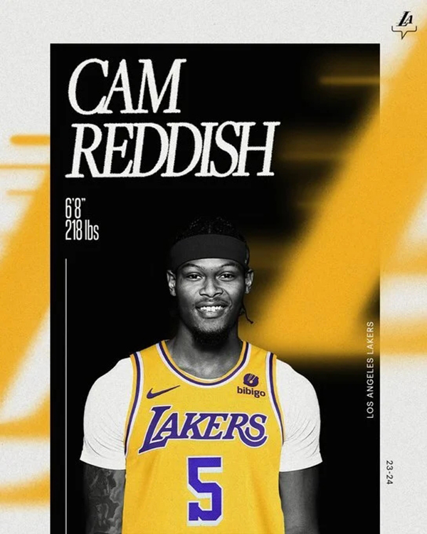 今夏湖人2年460万美元引援雷迪什,第二年是球员选项,新赛季将穿湖人5号球衣;2022-23赛季常规赛,雷迪什场均上场24.8分钟,得到9.7分2.2篮板1.4助攻1.0抢断。
