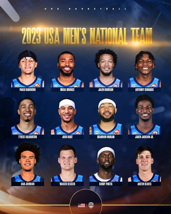 178直播讯07月07日,美国男篮正式公布参见2023年男篮世界杯的12人球员大名单,英格拉姆等年轻球员率队出征;12人均无世界大赛经验,科尔能否带队一雪前耻?